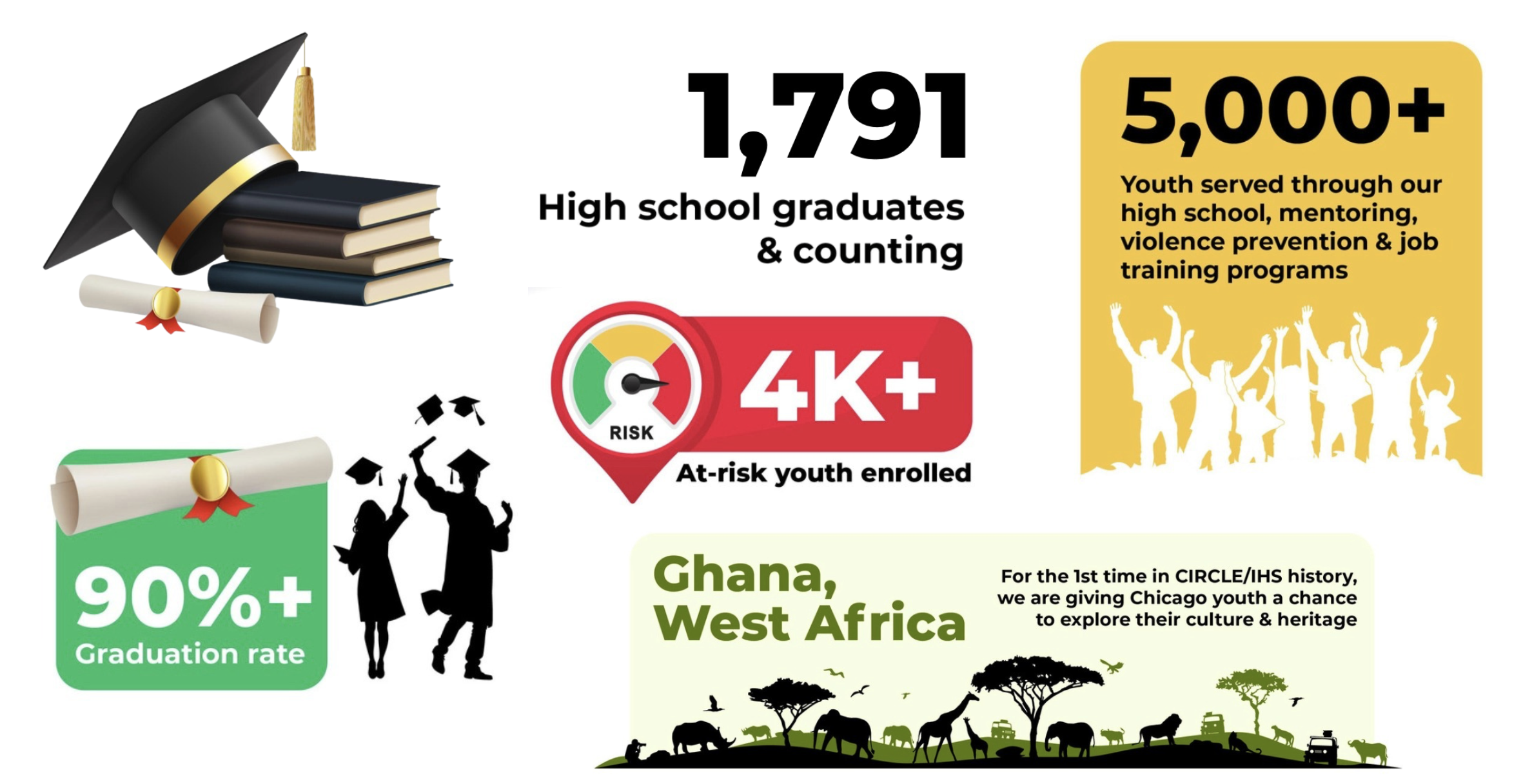 CIRCLE’s impact is measurable and growing. To date, 1,791 students have graduated, and more than 4,000 youth have enrolled in our programs, gaining access to alternative education, mentorship, and structured support. Beyond the classroom, we have served over 5,000 young people through high school programming, mentoring initiatives, violence prevention efforts, and job training opportunities. Each number represents a life supported, a barrier reduced, and a pathway created toward graduation, stability, and long term success.